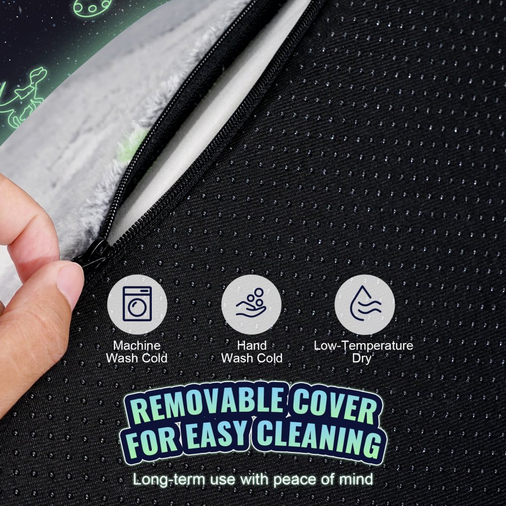 Materiały wysokiej jakości: Sofa dziecięca wykonana jest z tkaniny, która świeci w ciemności i wzbudza ciekawość, natomiast lekka gąbka 25D gwarantuje doskonałe wsparcie i trwałość, dzięki czemu sofa sprawdzi się w różnych otoczeniach.
