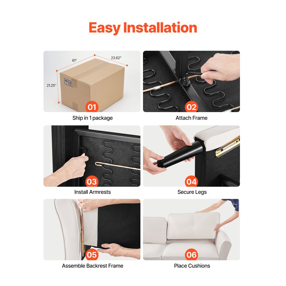 Łatwy montaż: Tę dwuosobową sofę można zmontować w zaledwie 10 minut. Opakowanie zawiera wszystkie wstępnie docięte części i instrukcję krok po kroku, co ułatwia montaż nawet początkującym.