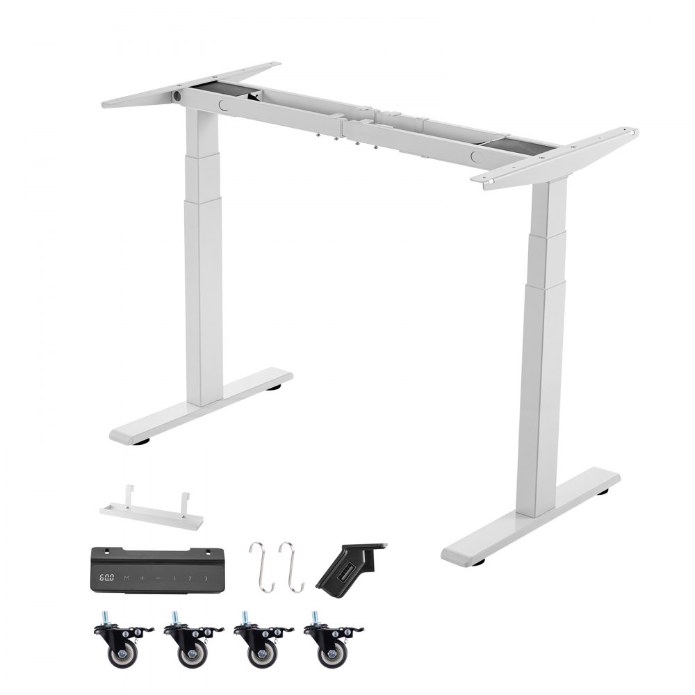 Stelaż biurka z regulacją wysokości, elektryczny stelaż biurka do 125 kg, 3-stopniowe nogi stołu z 2 silnikami, funkcja pamięci, wyświetlacz wysokości, zabezpieczenie przed kolizją i USB, stojak na biurko do biura, biały - Artykuły biurowe | Galaxy Sklep