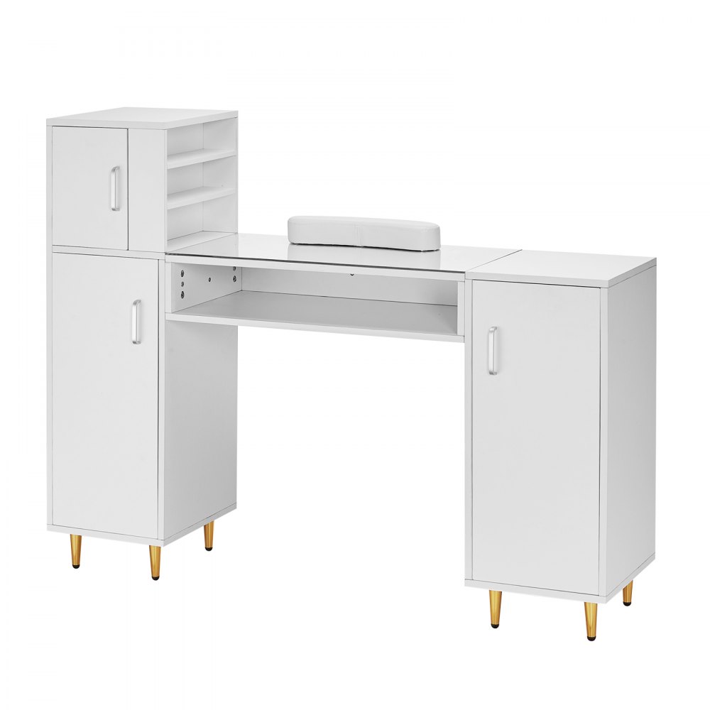 Stół do manicure VEVOR 1355 x 360 x 1080 mm, biurko do manicure, stanowisko do makijażu i manicure z szafkami do przechowywania, stół do manicure odporny na aceton, do stanowiska spa, podpórka pod nadgarstki, biały - Artykuły biurowe | Galaxy Sklep