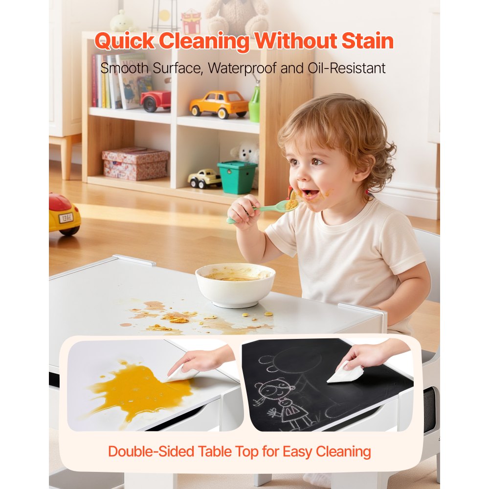 Łatwe czyszczenie: Gładka, wodoodporna powierzchnia tego dziecięcego stolika do zabawy jest odporna na brud i okruszki. Wystarczy przetrzeć go wilgotną ściereczką, aby utrzymać go w czystości – niezależnie od tego, czy robisz to po zabawie, majsterkowaniu, czy usuwasz ślady soku, jedzenia czy ołówka.
