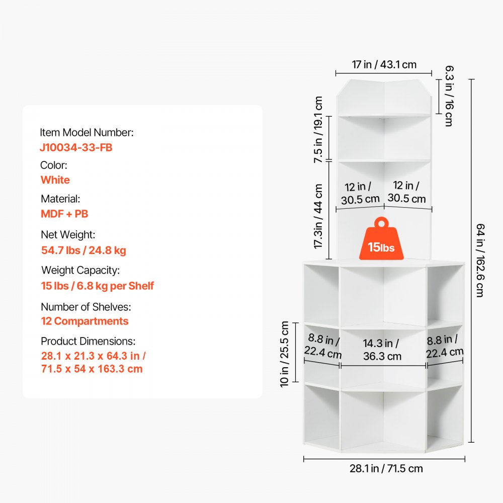 Zorganizowane miejsce do przechowywania z 12 przegródkami: Ta narożna szafka z 12 przegródkami pozwoli Ci utrzymać porządek wśród słuchawek, książek, dekoracji i innych drobiazgów. Regulowane półki (0-55 mm) pozwalają na łatwe dopasowanie przestrzeni do przechowywania naczyń, toreb, albumów ze zdjęciami i innych niezbędnych rzeczy.