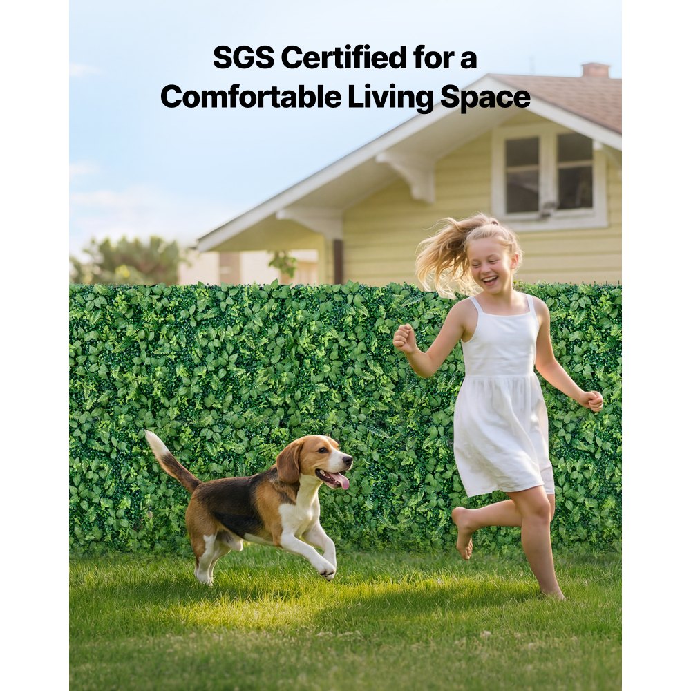 Nadaje się do użytku wewnątrz i na zewnątrz: Ten panel z bukszpanu sztucznego posiada certyfikat SGS i nadaje się do domów ze zwierzętami. Stanowi dekoracyjne, zielone tło. Przed montażem zalecamy przewietrzenie paneli w dobrze wentylowanym pomieszczeniu.