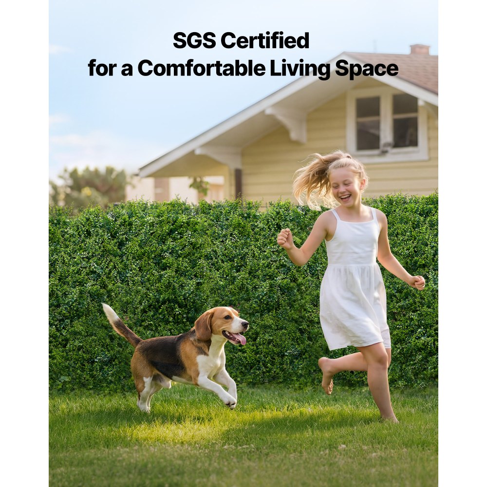 Nadaje się do użytku wewnątrz i na zewnątrz: Ten panel z bukszpanu sztucznego posiada certyfikat SGS i nadaje się do domów ze zwierzętami. Stanowi dekoracyjne, zielone tło. Przed montażem zalecamy przewietrzenie paneli w dobrze wentylowanym pomieszczeniu.