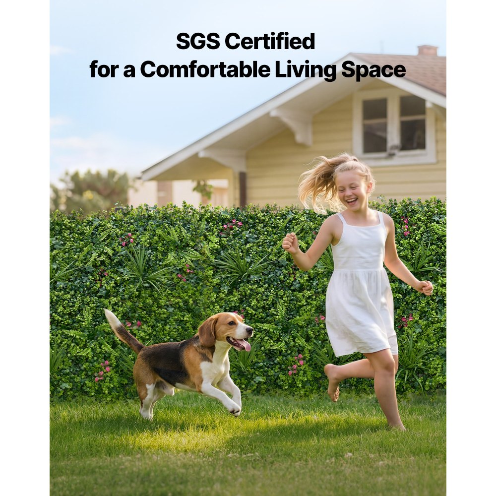 Nadaje się do użytku wewnątrz i na zewnątrz: Ten panel z bukszpanu sztucznego posiada certyfikat SGS i nadaje się do domów ze zwierzętami. Stanowi dekoracyjne, zielone tło. Przed montażem zalecamy przewietrzenie paneli w dobrze wentylowanym pomieszczeniu.