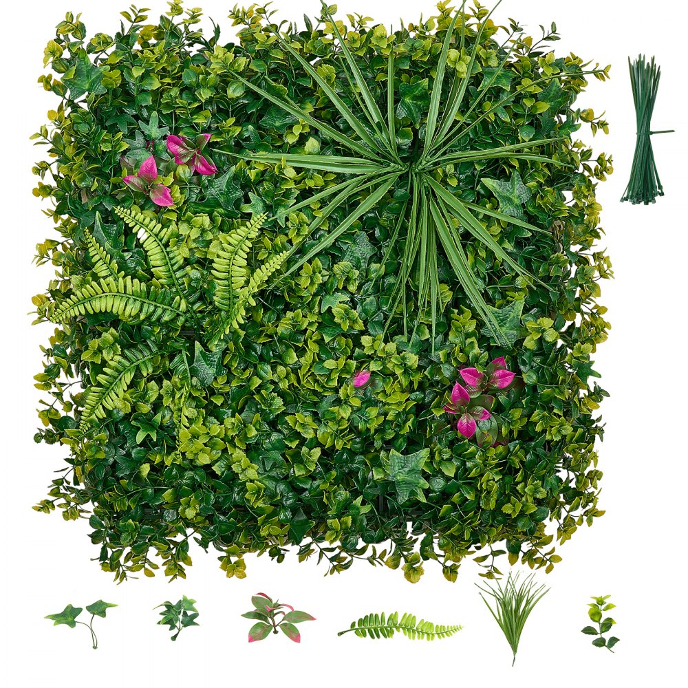 Sztuczny żywopłot 50x50 cm, zestaw 12 elementów, ściana roślinna w stylu paneli 3D, ekran prywatności z PE, ogrodzenie prywatności, ogrodzenie żywopłotowe, sztuczne rośliny, okładzina balkonowa na wesela, ogrody zewnętrzne, podwórka