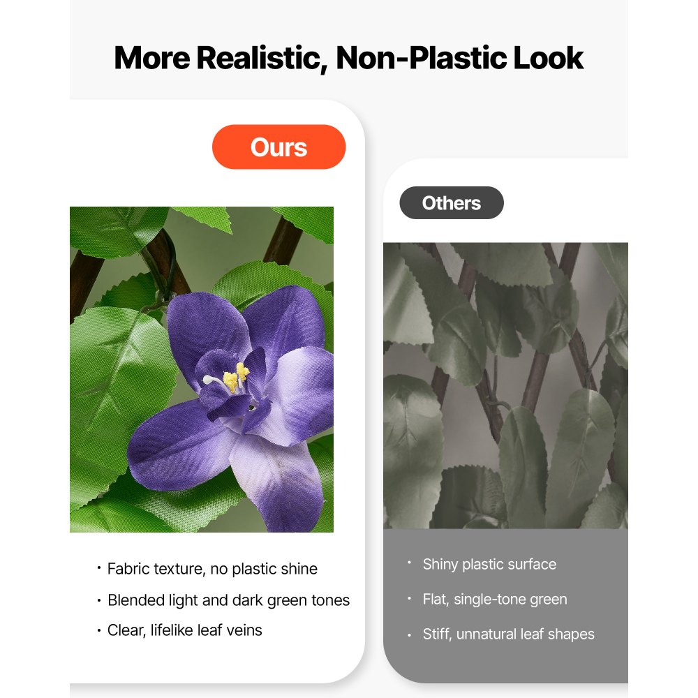 Realistyczny, naturalny wygląd: Drukowane liście z materiału minimalizują połysk plastiku i imitują wygląd prawdziwego bluszczu w świetle słonecznym, a ściana kwiatów i liści tworzy realistyczny efekt wizualny zarówno z bliska, jak i z daleka.