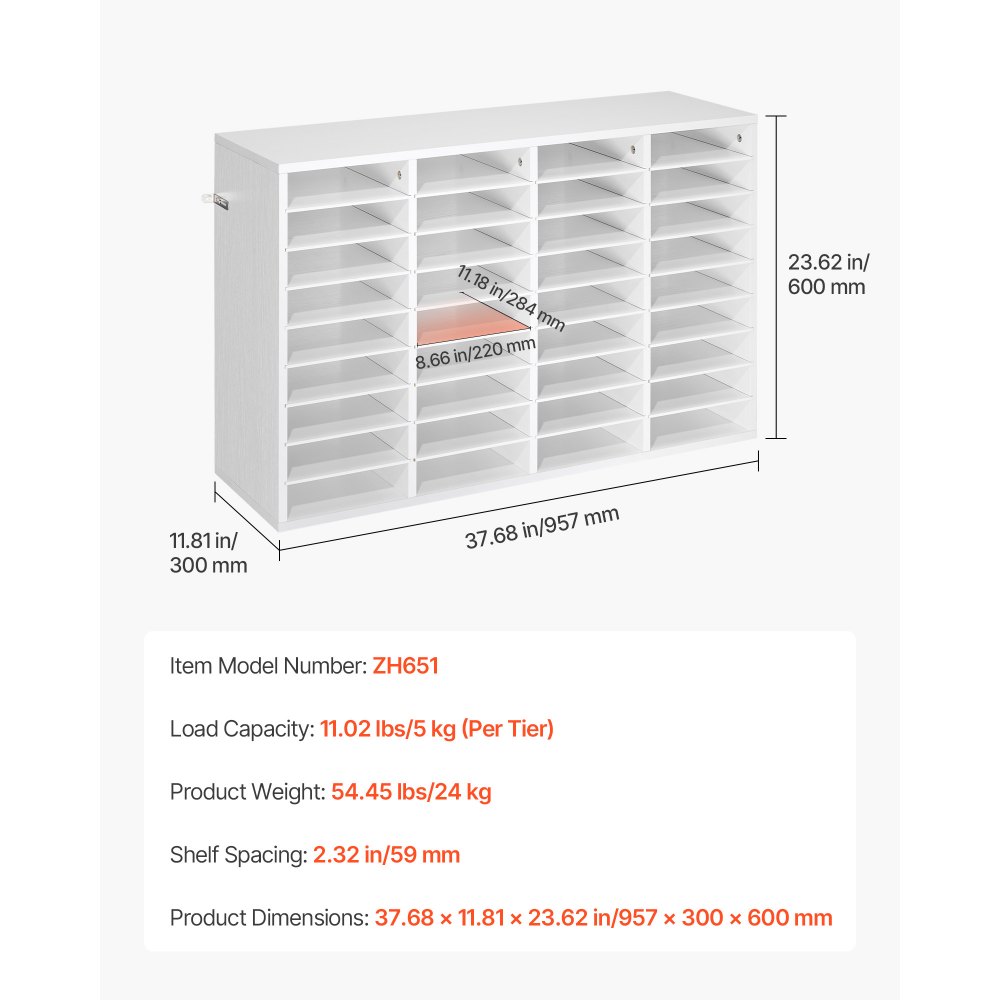 Tacka na dokumenty VEVOR z 36 przegródkami i wyjmowanymi półkami, drewniana tacka na dokumenty, uchwyt na dokumenty do biura, domu lub klasy, organizer na dokumenty, dokumenty i papier, kolor biały