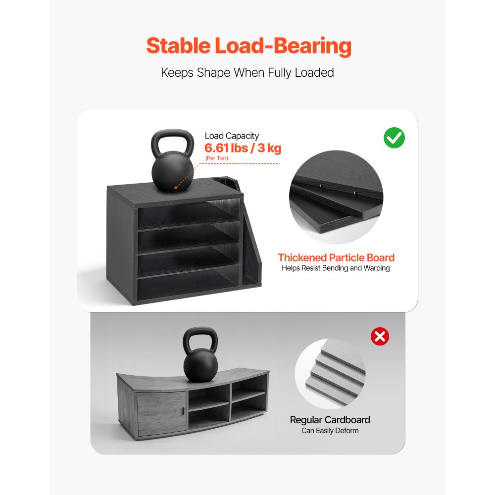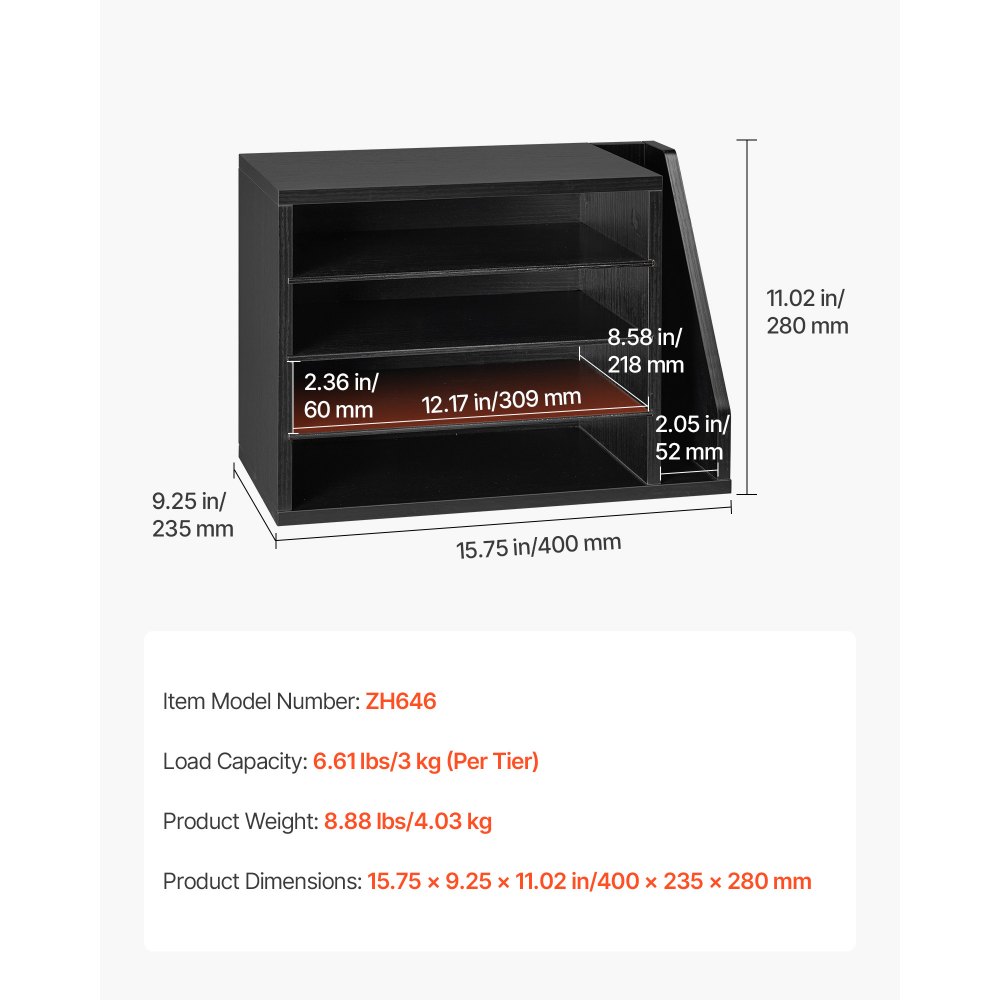 Tacka na dokumenty VEVOR z 4 przegródkami i wyjmowanymi półkami, drewniana tacka na dokumenty z uchwytem na dokumenty, organizer na dokumenty do biura i klasy, organizer na materiały, dokumenty i papiery, czarny