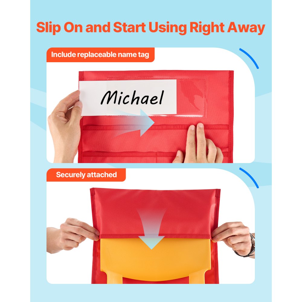 Torba na krzesła szkolne VEVOR, 12 szt., 43 x 48 cm, torba na oparcie z etykietą na imię, 6 kolorów, organizer na oparcie krzesła dla dzieci w klasie, przedszkolu, szkole i w domu - Artykuły biurowe | Galaxy Sklep