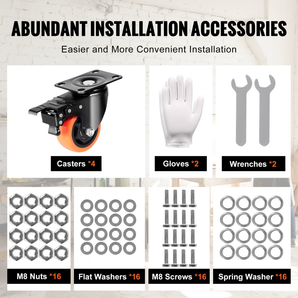 Zestaw 4 obrotowych kółek meblowych VEVOR, PVC φ76,2 mm, udźwig 454 kg, kółka transportowe z hamulcami A/B, kółka skrzyniowe, obrotowe o 360°, kółka o dużej wytrzymałości do domów, biur, studiów, fabryk - Artykuły biurowe | Galaxy Sklep