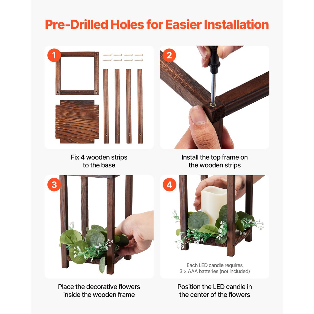 Łatwy i szybki montaż: Te drewniane lampiony są dostarczane z dużą ilością śrub i specjalnym śrubokrętem. Dzięki wstępnie nawierconym otworom i ilustrowanym instrukcjom, nawet początkujący mogą je łatwo złożyć bez użycia dodatkowych narzędzi. Oszczędź czas na przygotowywaniu dekoracji.