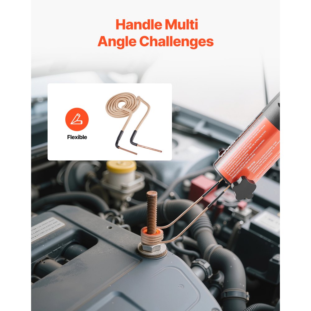 10-częściowy zestaw cewek: Zestaw cewek grzewczych zawiera 8 standardowych cewek o różnych średnicach, kompatybilnych z nakrętkami od 0,2 do 1,6 cala (5 do 40 mm), co zapewnia precyzyjne i wydajne ogrzewanie. Elastyczne cewki w kształcie litery U są przeznaczone do nieregularnych części, długich wałów i zakrzywionych elementów obrabianych. Nadaje się do szerokiej gamy prac konserwacyjnych pojazdów i urządzeń.