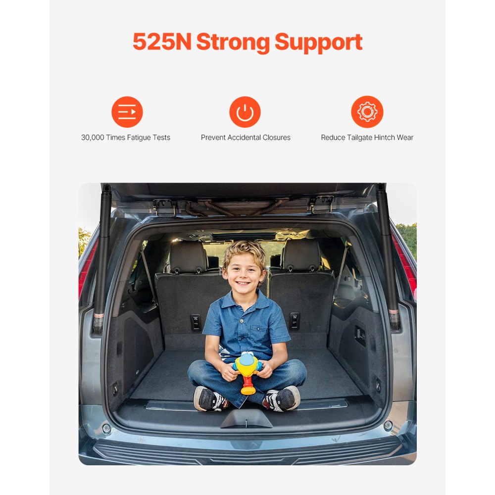 Mocne podparcie: Dzięki potężnej sile podparcia 525 N, nasza sprężyna klapy bagażnika z elektrycznym wspomaganiem otwiera i zamyka klapę bagażnika płynnie i bezpiecznie w ciągu 5-8 sekund, zmniejszając zużycie zawiasów. Sprężyna klapy bagażnika przeszła 30 000 testów wytrzymałościowych, co gwarantuje większe bezpieczeństwo.