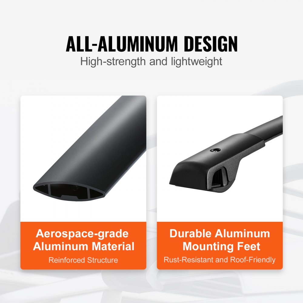 Lekkie i wytrzymałe: Nasze belki poprzeczne bagażnika dachowego wykonane są z wysokiej jakości aluminium 6063-T6, które jest nie tylko odporne na rdzę i korozję, ale także lekkie, dzięki czemu nie obciążają Twojego samochodu. Wzmocnione z myślą o długotrwałym użytkowaniu, pozostają wytrzymałe i nie wyginają się ani nie odkształcają.