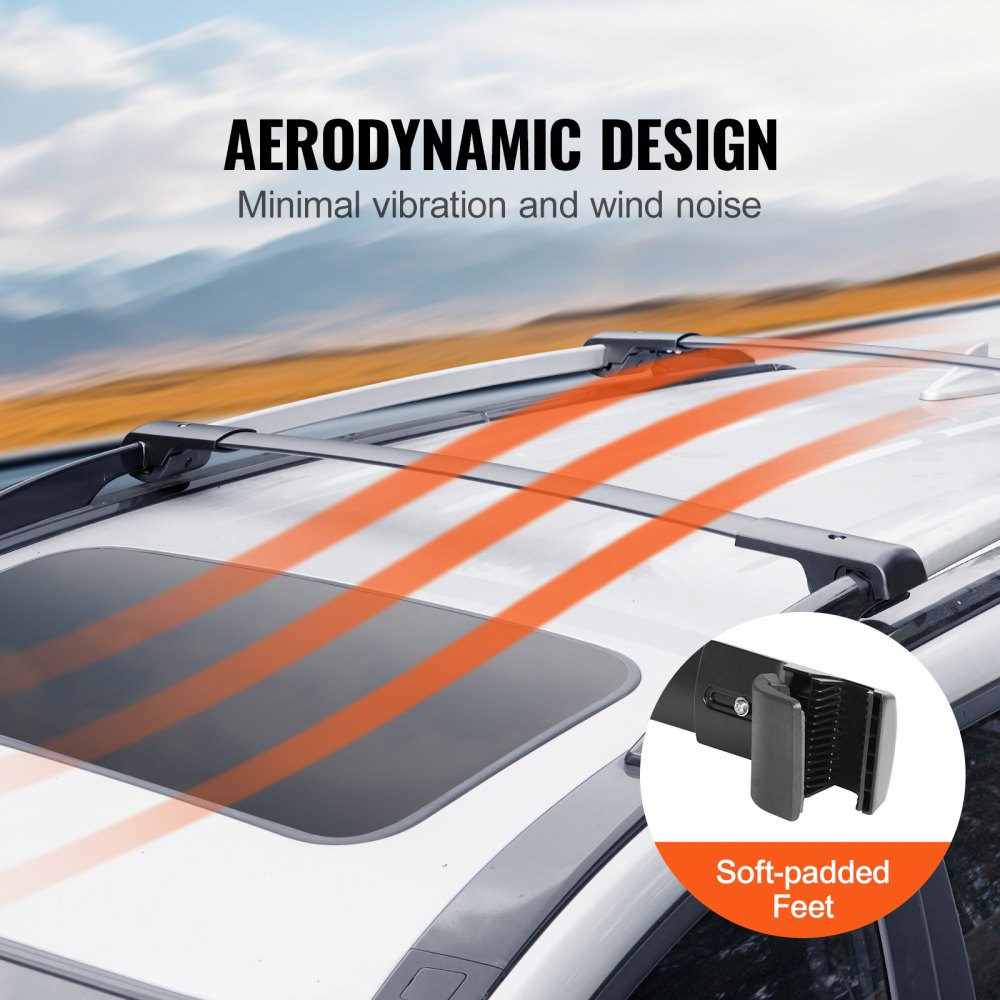 Belki poprzeczne bagażnika dachowego VEVOR, pasujące do Subaru Forester 2014-2021, z podniesionymi relingami bocznymi, ładowność 200 funtów, aluminiowe belki poprzeczne z zamkami, do bagażnika dachowego, bagażu itp.