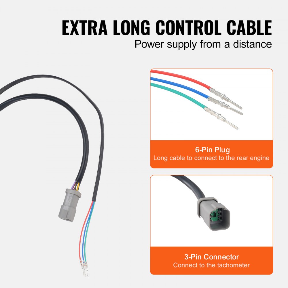 Kabel sterujący 20 cali: Nasza skrzynka zdalnego sterowania jest wyposażona w wiązkę przewodów o długości 1,3 stopy/400 mm ze złączem 6-pinowym i 3-pinowym. Oraz kabel o długości 700 mm z 3-pinowym złączem do podłączenia miernika, zapewniający wystarczający zasięg w przypadku zdalnych konfiguracji zasilania. Te wiązki przewodów są wykonane z trwałego materiału termoplastycznego i zaprojektowane z myślą o trwałości. Podczas montażu wyłącz zapłon, wyjmij kluczyk i odłącz wszystkie kable oraz zasilanie.