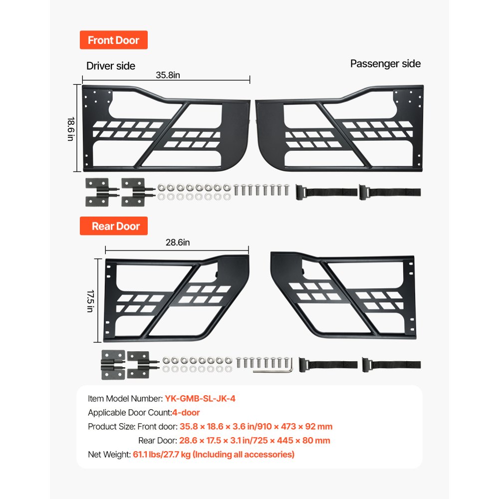 Drzwi rurowe VEVOR Jeep (4-drzwiowe) w stylu myśliwskim z wytrzymałymi zawiasami i oryginalnym zamkiem, drzwi Jeep z gumowymi podkładkami i hartowaną rurą stalową, pasujące do Jeepa Wranglera JK 2007-2018 - Auto-moto | Galaxy Sklep