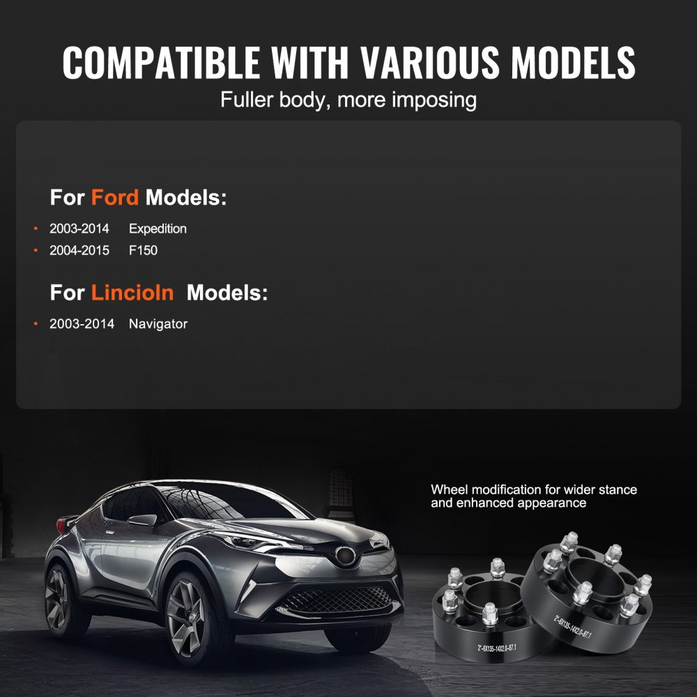 Szeroka kompatybilność: Te dystanse do kół są kompatybilne z wieloma pojazdami marki Jeep i Ford z lat 2003–2014, w tym Ford (Expedition 2003–2014, F150 2004–2015) i Lincoln (Navigator 2003–2014).