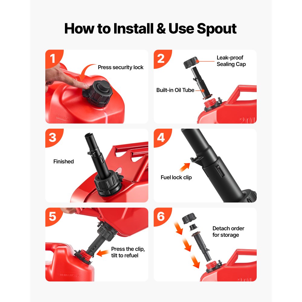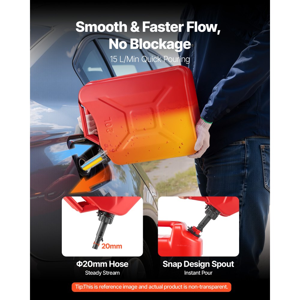 Kanister na paliwo VEVOR, 20 l, kanister na benzynę z dzióbkiem i wygodnym uchwytem, maks. przepływ 6 l/min, metalowy zbiornik na benzynę do większości samochodów, motocykli, quadów i pojazdów UTV, czerwony, 2 sztuki w opakowaniu
