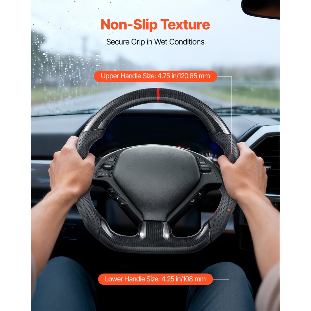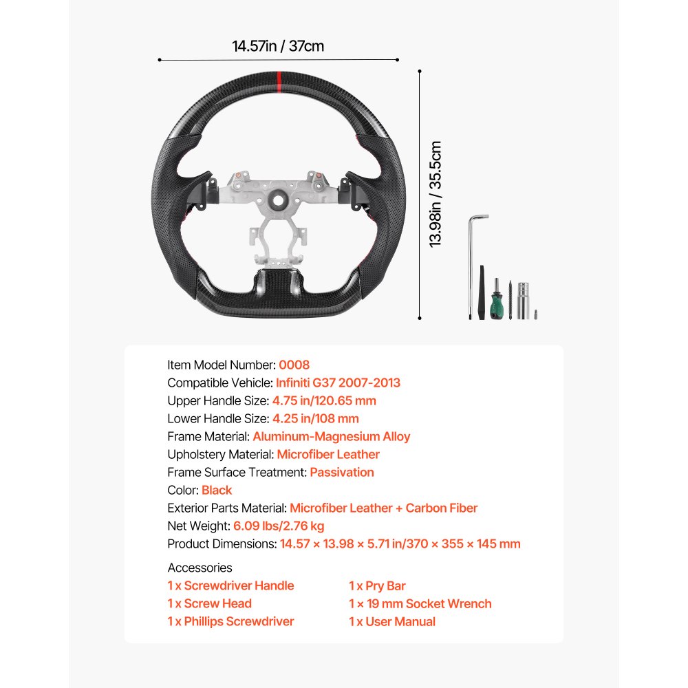 Kierownica VEVOR do Infiniti G37 (2007–2013), kierownica w kształcie litery D z włókna węglowego, spłaszczona u dołu, skórzany uchwyt z antypoślizgową powierzchnią i precyzyjnymi przeszyciami, część zamienna do Infiniti, czarna