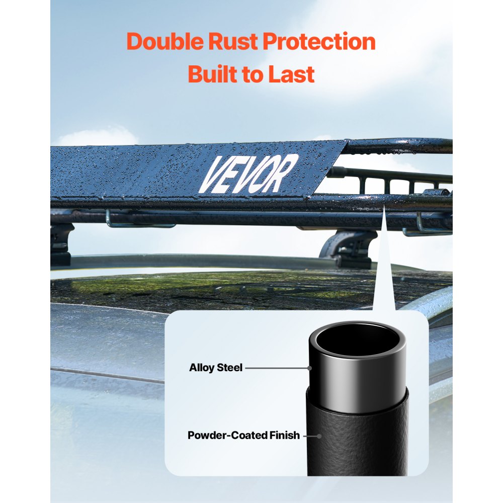 Trwały i odporny na warunki atmosferyczne: Wykonany z wytrzymałej stali stopowej, ten bagażnik dachowy zaprojektowano tak, aby wytrzymał działanie warunków atmosferycznych bez odkształcania się. Powłoka proszkowa zapewnia doskonałą odporność na korozję i gwarantuje trwałość w trudnych warunkach atmosferycznych, takich jak intensywne słońce, deszcz, śnieg lub kurz