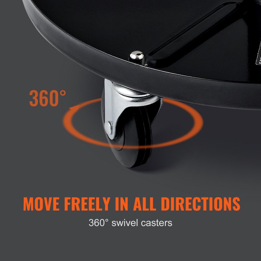 Łatwe przemieszczanie: Wszystko, czego potrzebujesz, masz pod ręką! Wyposażony w pięć uniwersalnych kółek o średnicy 2,5 cala (6,35 cm) i zakresie obrotu 360°, stołek warsztatowy można elastycznie prowadzić nawet po nierównych powierzchniach. Kółka z polipropylenu na łożyskach kulkowych posiadają mechanizm dociskowy i są odporne na zużycie. Płynny ruch na różnych powierzchniach.