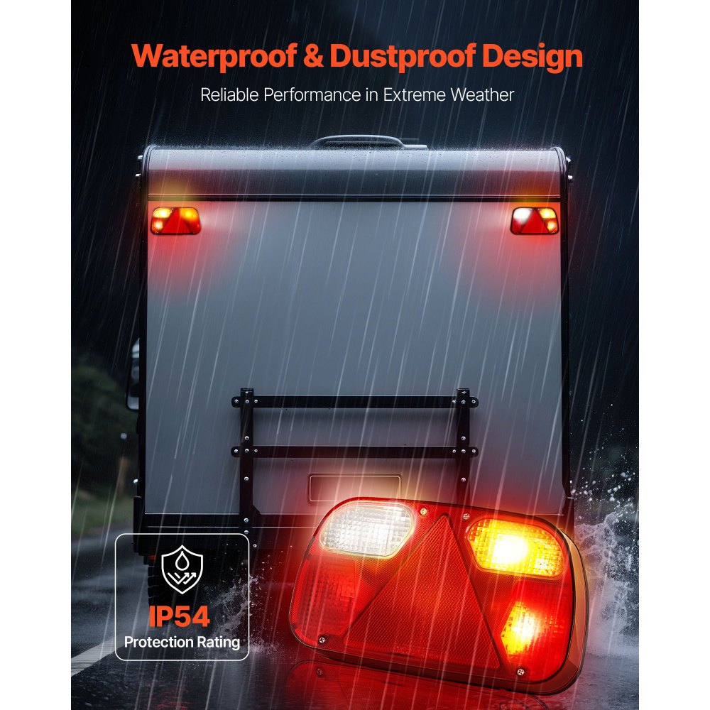 Wodoodporna i pyłoszczelna konstrukcja: Dzięki klasie ochrony IP54, ten zestaw oświetlenia przyczepy łodziowej jest odporny na kurz i deszcz. Gwarantuje stabilną pracę w ulewnych deszczach, burzach piaskowych i niekorzystnych warunkach, zapewniając długotrwałe oświetlenie i funkcje ostrzegawcze.