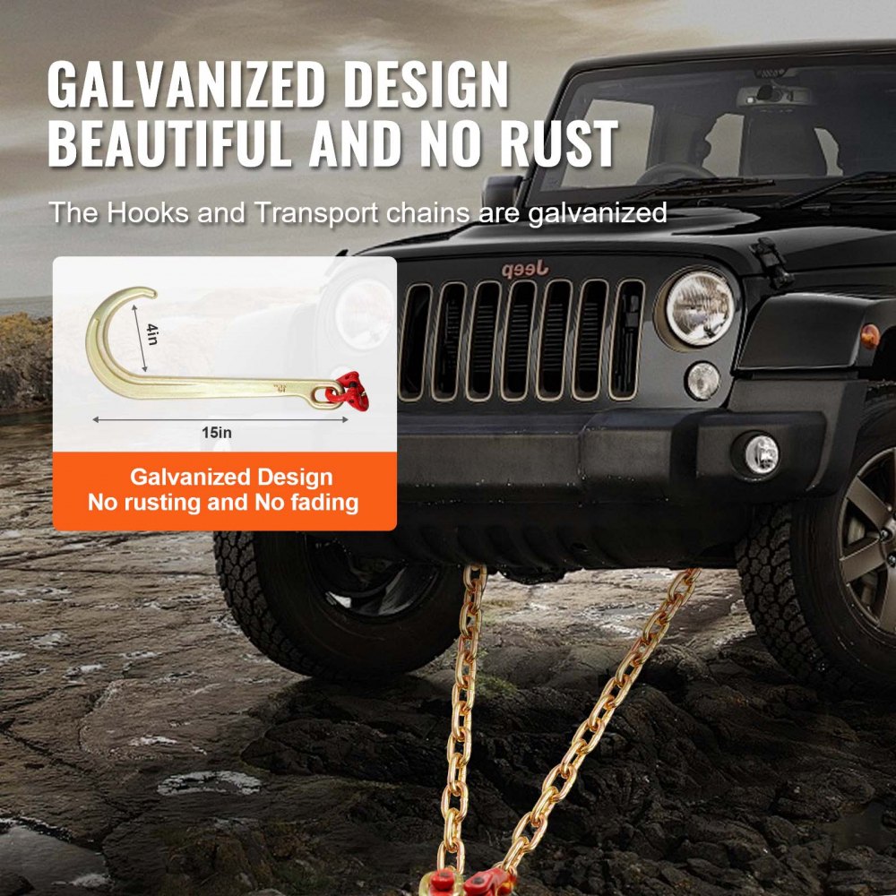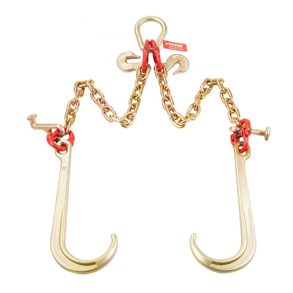 Łańcuch holowniczy VEVOR G80 z paskiem klinowym, 3/8 cala x 2 stopy, z 15-calowym hakiem w kształcie litery J, hakiem w kształcie litery T i hakiem chwytającym, wytrzymały łańcuch holowniczy do transportu o bezpiecznym obciążeniu roboczym 7800 funtów do holowania ciężarówek z platformą - Auto-moto