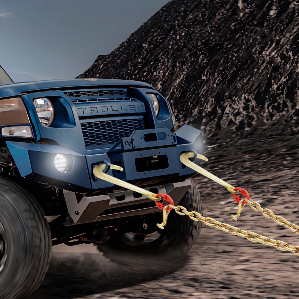 Szerokie zastosowanie: Łańcuch holowniczy jest szeroko stosowany w różnego rodzaju pracach holowniczych i mobilnych. Wyposażony w duże haki typu J, T i haki chwytakowe, nadaje się do różnych pojazdów i scenariuszy.