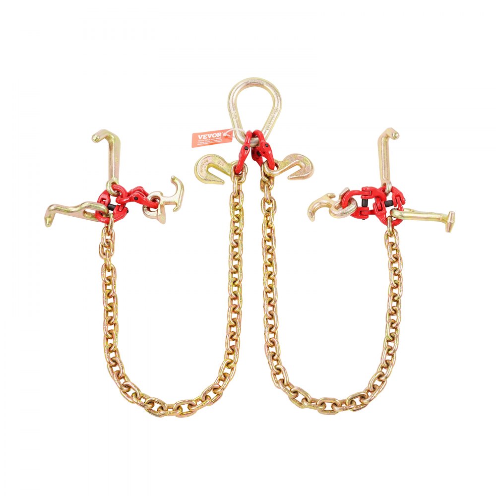 Łańcuch holowniczy VEVOR G80 z paskiem klinowym, 5/16 cala x 3 stopy, z hakiem w kształcie litery R, hakiem w kształcie litery T, hakiem w kształcie litery J i hakiem chwytającym, transportowy łańcuch holowniczy o bezpiecznym obciążeniu roboczym 10800 funtów do holowania ciężarówek z platformą - Auto-moto | Galaxy Sklep