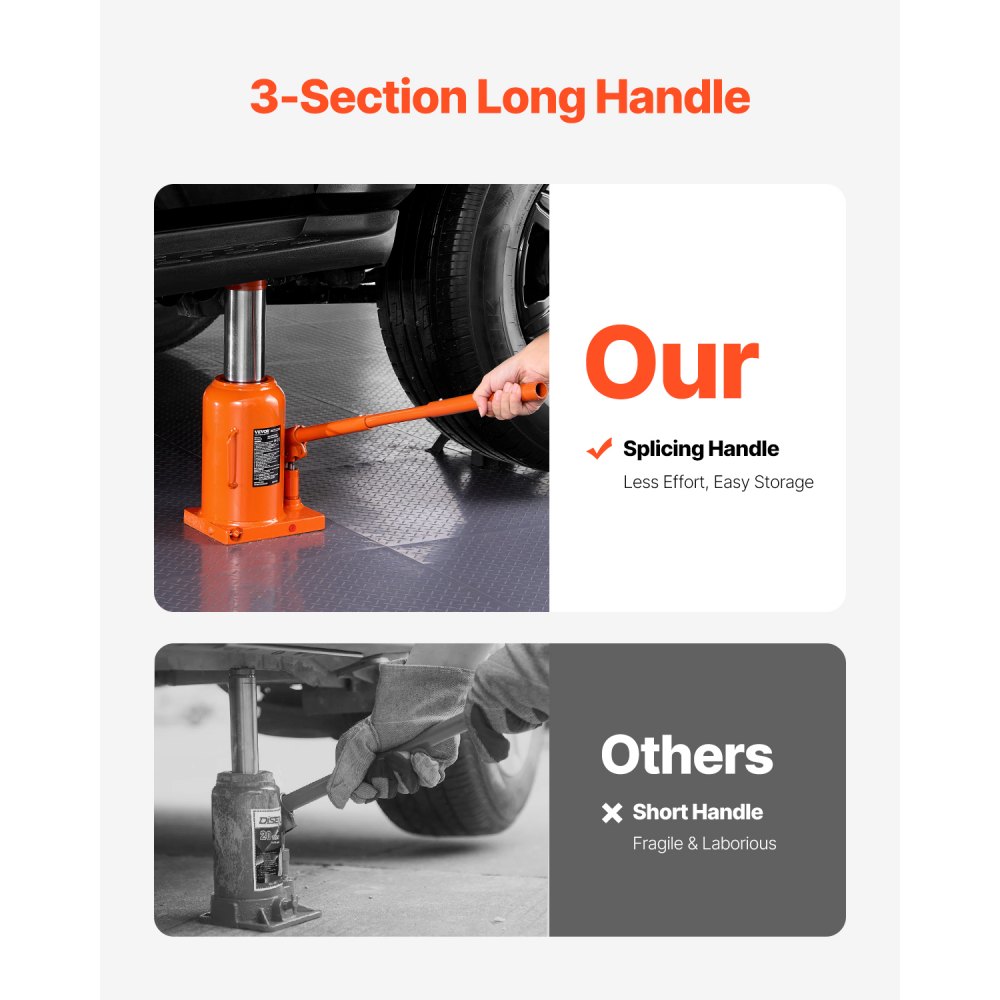Podnośnik hydrauliczny samochodowy VEVOR, podnośnik butelkowy 50 t z zakresem podnoszenia 28-44 cm i 3-częściową długą rączką, do samochodów osobowych, dostawczych, kamperów, napraw samochodowych, technologii przemysłowych
