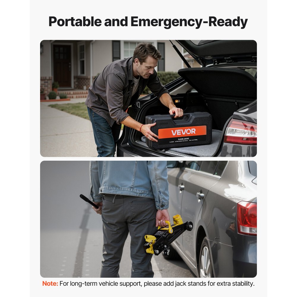 Idealny do nagłych napraw: Wyposażony w plastikową obudowę, ten podnośnik hydrauliczny można przechowywać w bagażniku lub garażu, chroniąc go przed kurzem. Lekki i kompaktowy, idealny do nagłych wypadków drogowych.