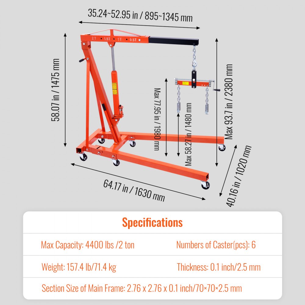 Żuraw silnikowy i urządzenie poziomujące 2 w 1: Hydrauliczna wciągarka silnikowa VEVOR łączy w sobie mocny żuraw silnikowy i standardowe urządzenie poziomujące. Pożegnaj się z kłopotami związanymi z zakupem osobnego sprzętu, ponieważ nasza wciągarka silnikowa 2 w 1 oferuje wszystko, czego potrzebujesz, aby zaoszczędzić czas i pracę.