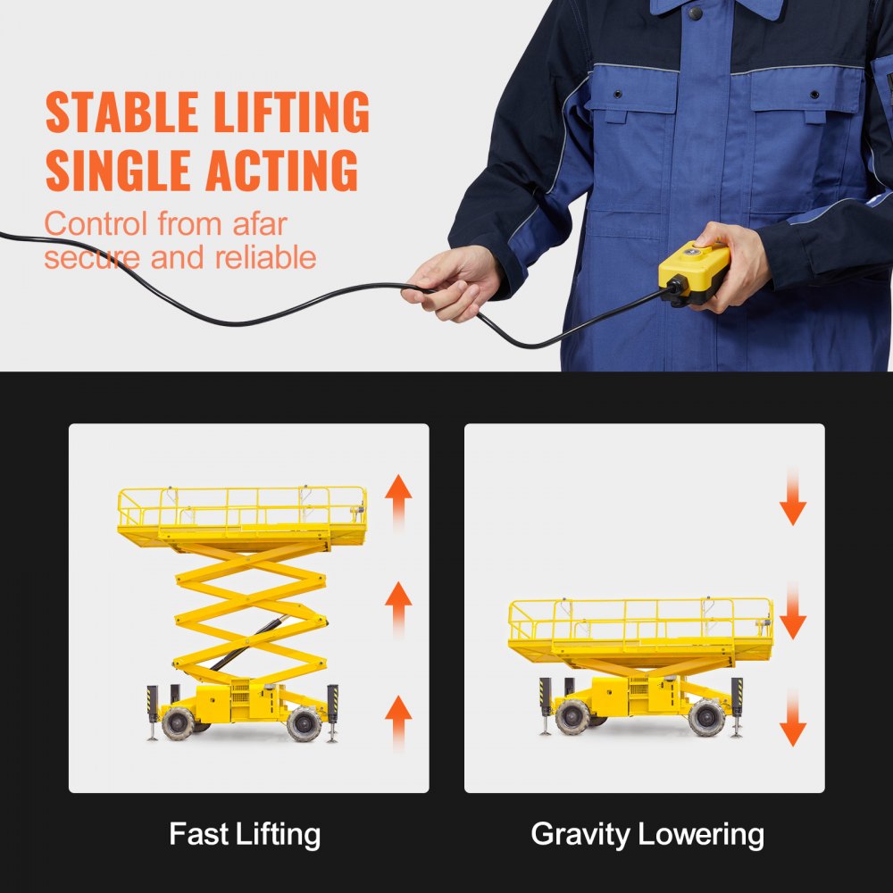 Szybkie podnoszenie: Agregat hydrauliczny wyposażony jest w mechanizm jednostronnego działania, który zapewnia stabilniejszą i niezawodniejszą pracę podnośnika. Wbudowany zawór bezpieczeństwa automatycznie uwalnia ciśnienie po przekroczeniu dopuszczalnego ciśnienia, zapewniając bezpieczniejszą pracę i mniej przestojów.