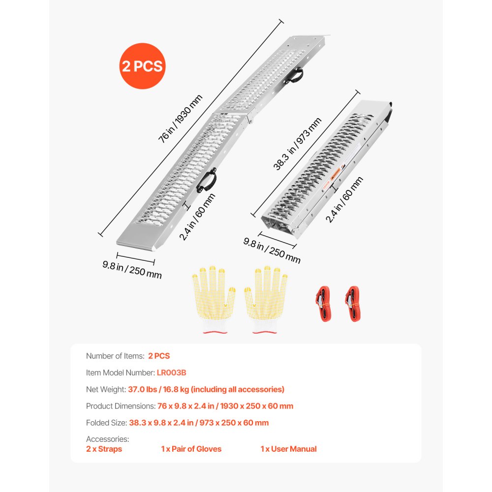 Rampy aluminiowe VEVOR, 2-częściowa, wytrzymała rampa załadunkowa (nośność 453 kg) z szeroką powierzchnią, uniwersalna, stabilna rampa załadunkowa z uchwytami, do quadów, motocykli, rowerów elektrycznych - Auto-moto | Galaxy Sklep
