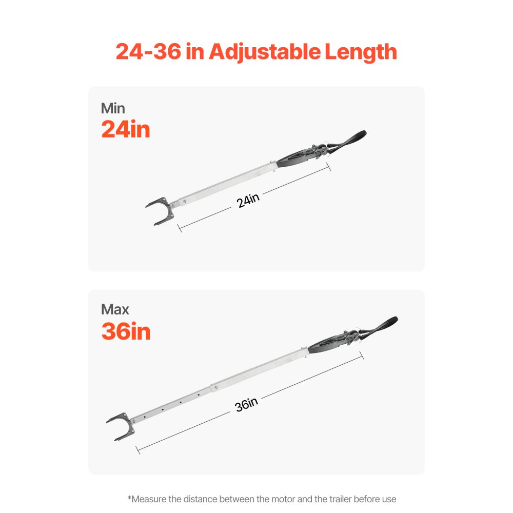 Regulowana długość: Długość osłony tylnej można regulować w zakresie od 24 do 36 cali (60,96-91,44 mm), co umożliwia jej wykorzystanie w różnych zastosowaniach związanych z holowaniem silnika. Uwaga: Przed użyciem należy zmierzyć odległość między silnikiem a przyczepą.