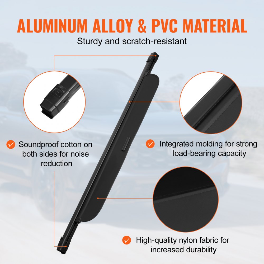 Wytrzymała i trwała: Rozkładana osłona bagażnika wykonana jest z solidnej aluminiowej ramy i wytrzymałego nylonu, który jest odporny na rozdarcia, nacisk i łatwy w czyszczeniu. Zintegrowana, dźwiękochłonna bawełna minimalizuje zarysowania we wnętrzu i redukuje hałas podczas jazdy. Idealna dla zwiększenia funkcjonalności i bezpieczeństwa.
