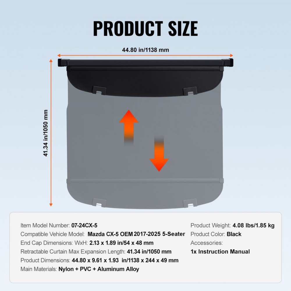 Zgodność z pojazdem: Ta rozkładana osłona bagażnika jest przeznaczona do 5-osobowej Mazdy CX-5 (model oryginalny 2017-2025). Przed zakupem prosimy o sprawdzenie rocznika modelu pojazdu. Osłona została zaprojektowana tak, aby idealnie dopasowywała się do kształtu przestrzeni bagażowej pojazdu, zapewniając porządek i dobrą organizację.