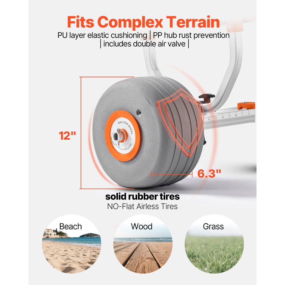 Wózek na kajak VEVOR, 158 kg, wózek na kajaki z 30,5 cm pompowanymi oponami poliuretanowymi i pasem mocującym, wózek na łódź do transportu kajaków, kanadyjek, desek SUP, łodzi Jon, sprzętu do sportów wodnych, 810 x 990 x 570 mm