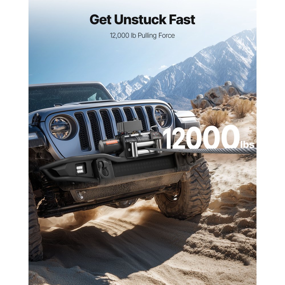 Siła uciągu 12 000 funtów: Ta elektryczna wyciągarka zapewnia siłę uciągu wynoszącą 5400 kg, co pozwala na szybkie i łatwe wyciąganie SUV-ów i pickupów z błota lub piasku bez obaw o odkształcenie skrzyni biegów.