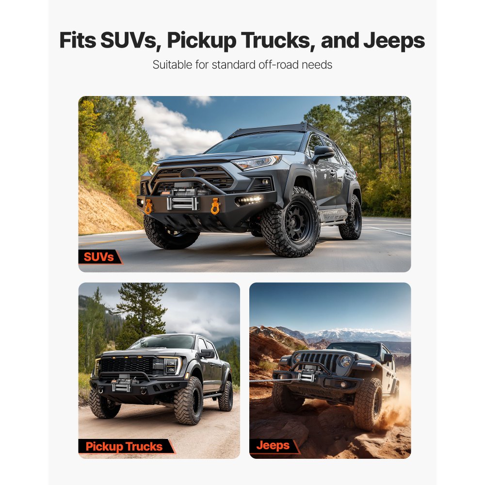 Szeroka kompatybilność: Uniwersalny sposób montażu pasuje do większości SUV-ów, pickupów i jeepów. Zestaw z wyciągarką holowniczą zawiera prowadnicę liny, hak i kabel zasilający – gotowy do szybkiego montażu i użycia.