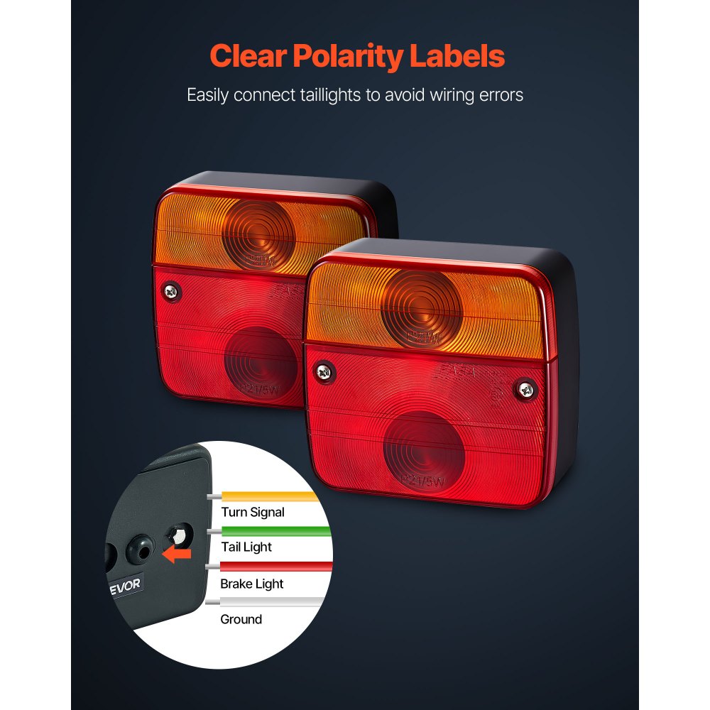 Zestaw 2 lampek do przyczepy VEVOR z 4 trybami (światło stopu/światło kierunkowskazu/światło tylne/oświetlenie tablicy rejestracyjnej), wodoodporny i pyłoszczelny zestaw oświetlenia do przyczepy, łodzi, kampera - Auto-moto