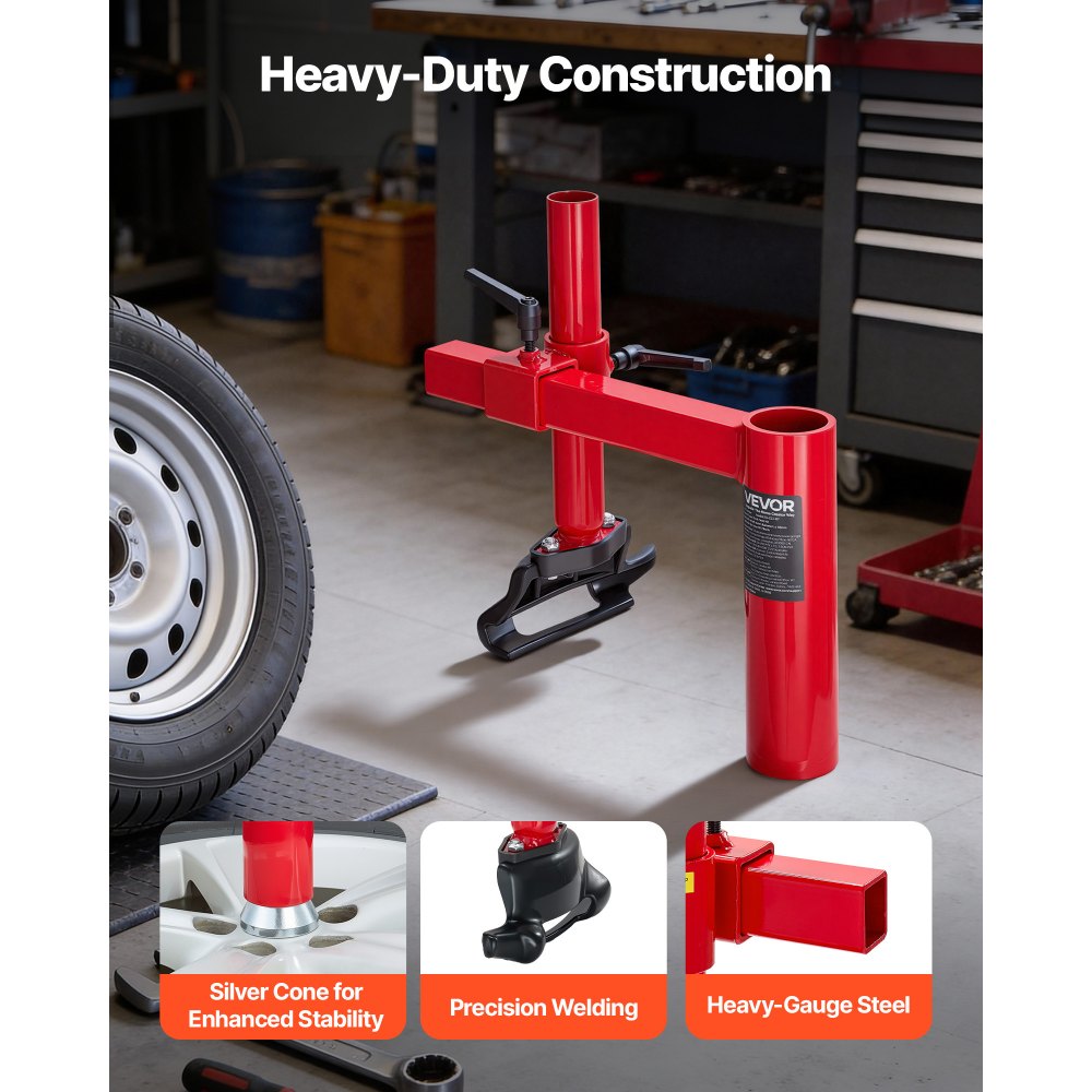 Solidna konstrukcja stalowa: głowica montażowa do opon wykonana jest ze wzmocnionej, wytrzymałej stali. Wzmocnione ścianki rurowe zapewniają wysoką wytrzymałość, wytrzymują nacisk podczas demontażu dużych opon i są odporne na odkształcenia.