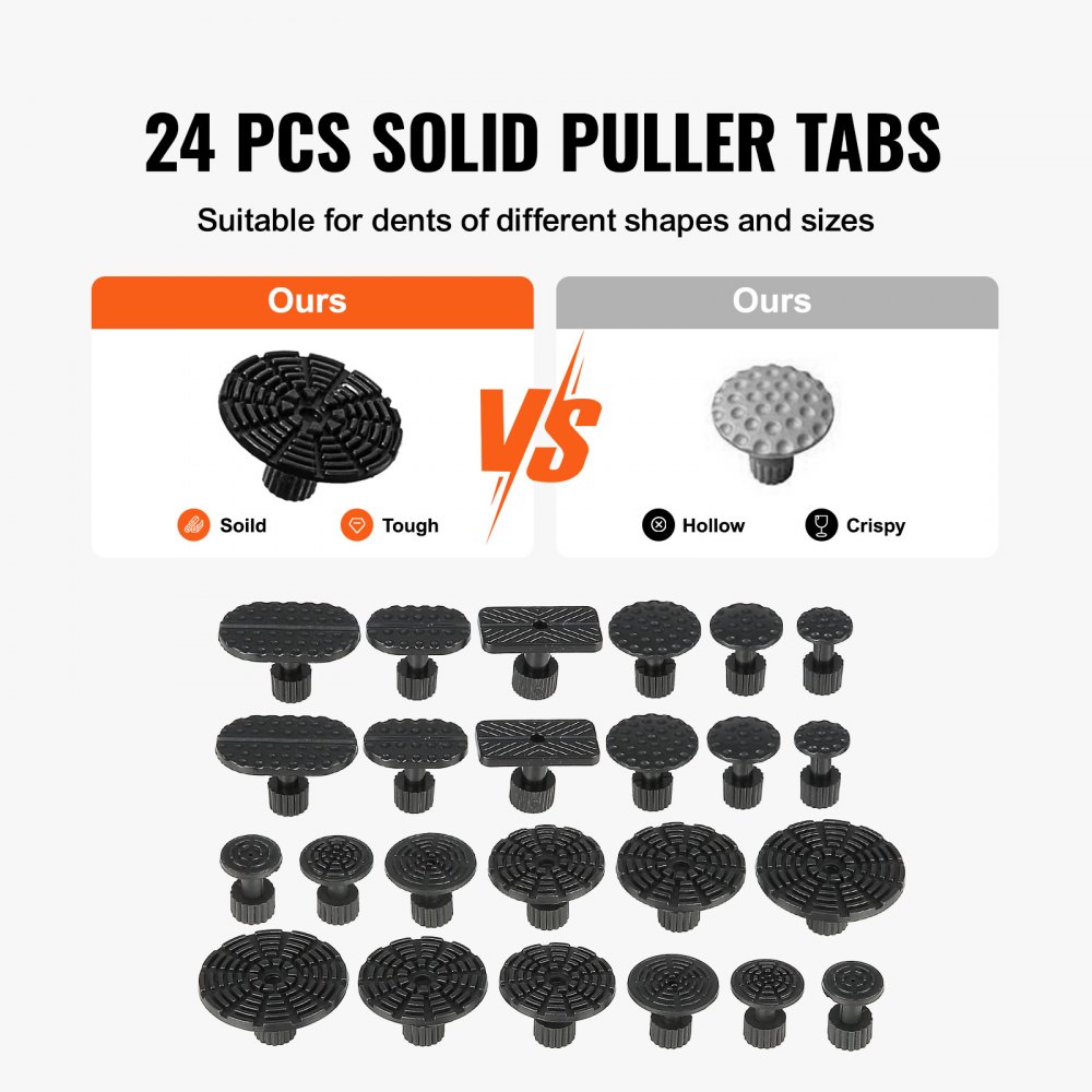 Zestaw do naprawy wgnieceń VEVOR, 56 elementów, zawiera 20 uchwytów i 6 uchwytów, aluminiowe narzędzie do usuwania wgnieceń w samochodach, lodówkach itp.