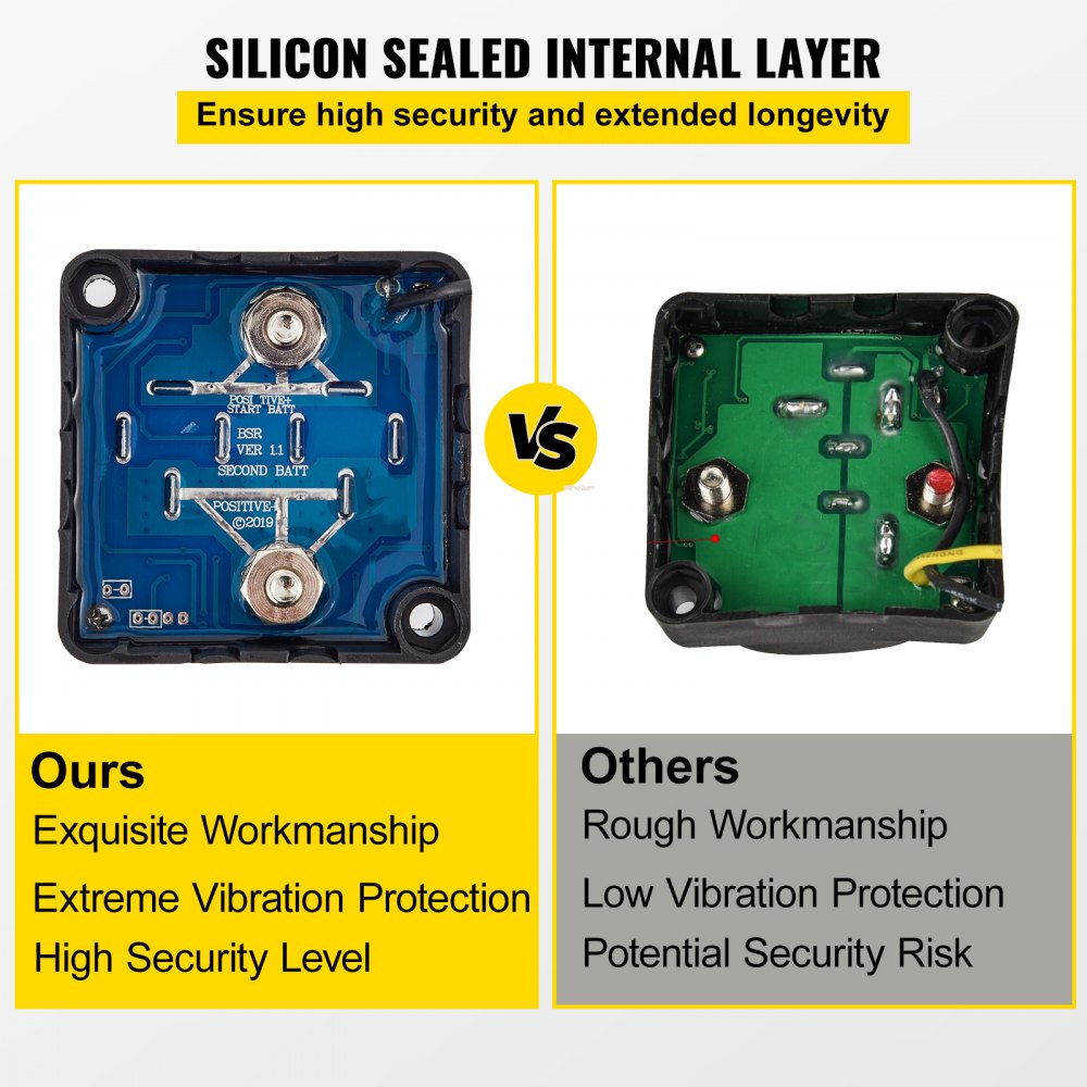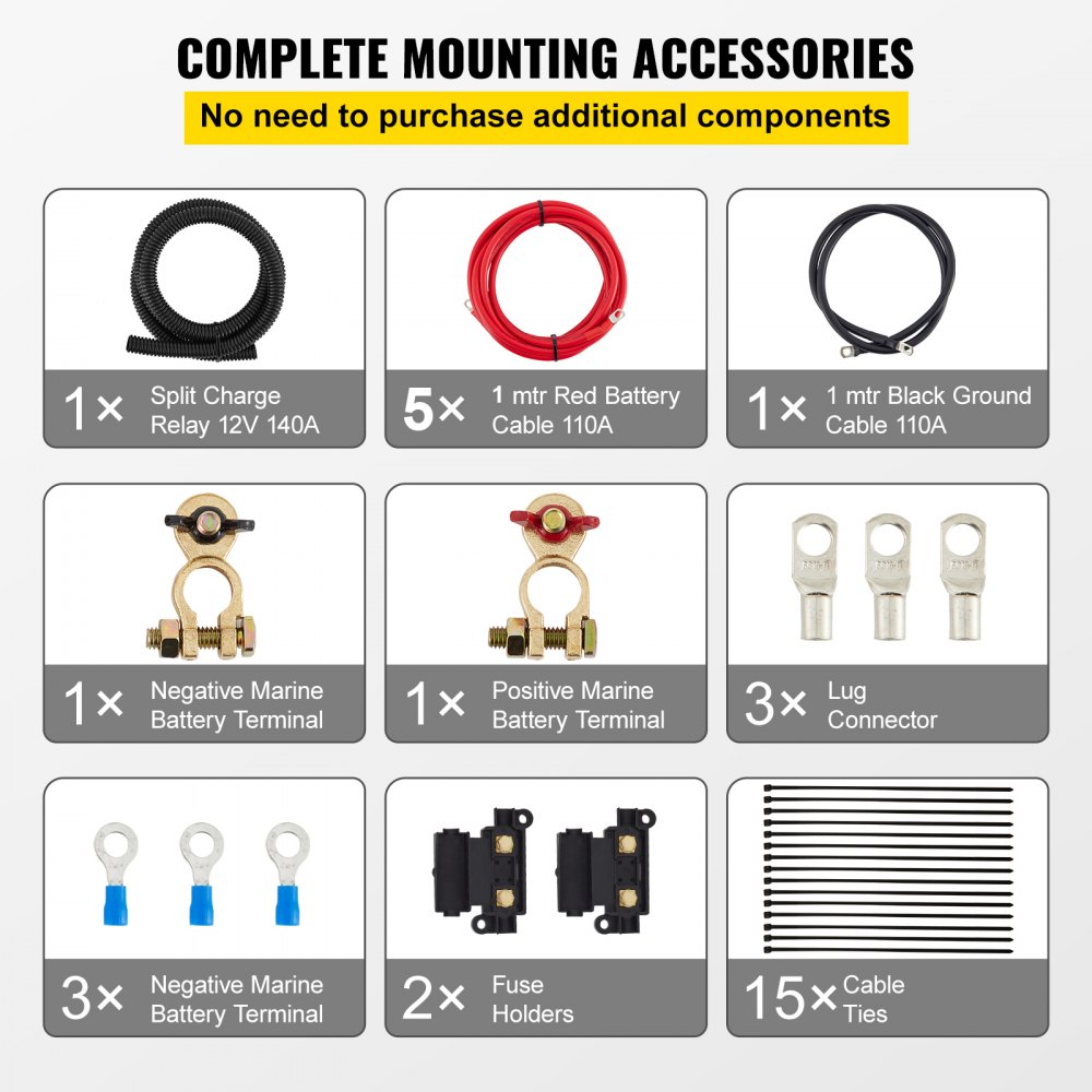System podwójnej separacji akumulatorów 12 V: Włącz przy 13,3 V i wyłącz przy 12,8 V. Oznacza to, że główny akumulator Twojego pojazdu jest zawsze naładowany i zawsze można go uruchomić. Izolator automatycznie łączy dwa akumulatory jednocześnie podczas ładowania i izoluje je od siebie, gdy pojazd jest wyłączony.