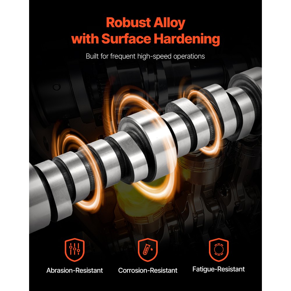 Poprawiona odporność na zużycie: wałek rozrządu silnika wykonany jest z wytrzymałego szarego żeliwa, co zapewnia odporność na zużycie i wytrzymałość zmęczeniową. Został zaprojektowany tak, aby wytrzymać tysiące wstrząsów silnika na minutę, zmniejszając zużycie powierzchni styku między krzywkami krzywek a kolumnami popychaczy.
