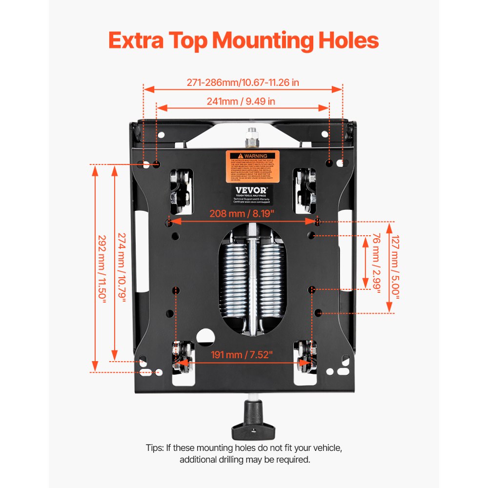 Zestaw zawieszenia fotela VEVOR 460x325x70 mm, uniwersalne zawieszenie pneumatyczne do kosiarek z zerowym promieniem skrętu, regulowany zestaw zawieszenia fotela ciągnika, kompatybilny z fotelem wózka widłowego i spycharki