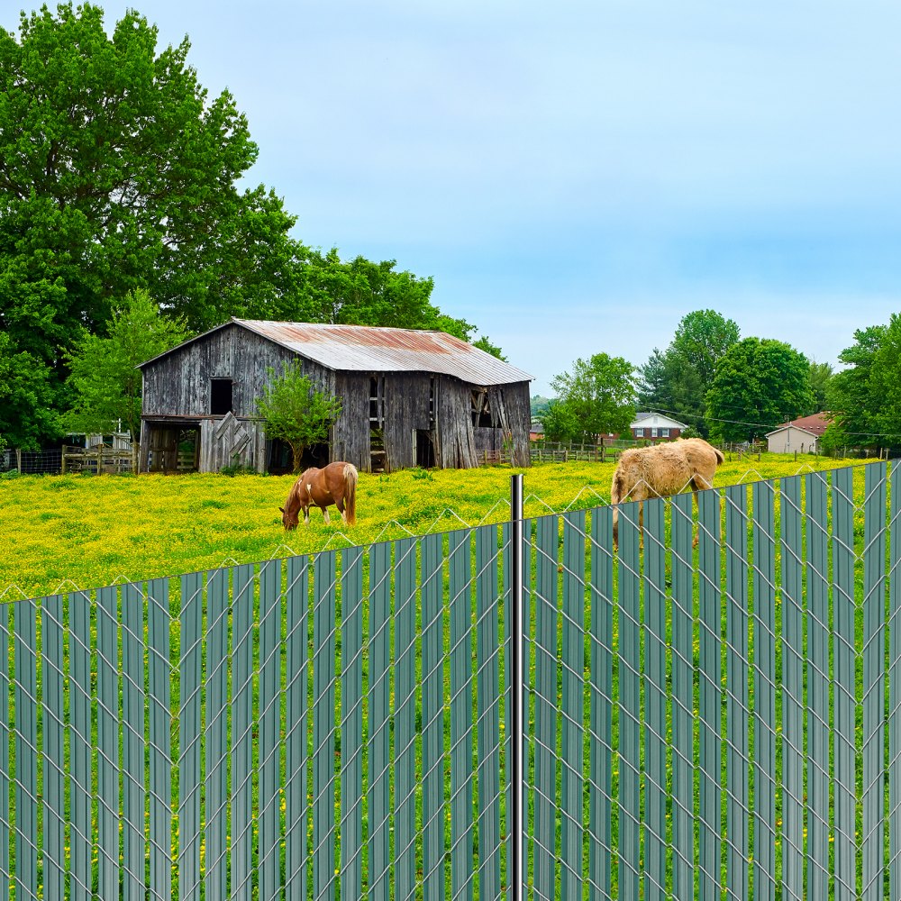 Większa prywatność: Możesz wybrać różne poziomy ochrony prywatności w zależności od swoich potrzeb. Ogniwo łańcucha o szerokości 2 cali zapewnia około 98% prywatności, ogniwo łańcucha o szerokości 2-1/4 cala zapewnia około 95% prywatności, a ogniwo łańcucha o szerokości 2-3/8 cala zapewnia około 80% prywatności. Przed złożeniem zamówienia należy dokładnie zmierzyć ogrodzenie z siatki łańcuchowej, aby dobrać odpowiednie szczeble.