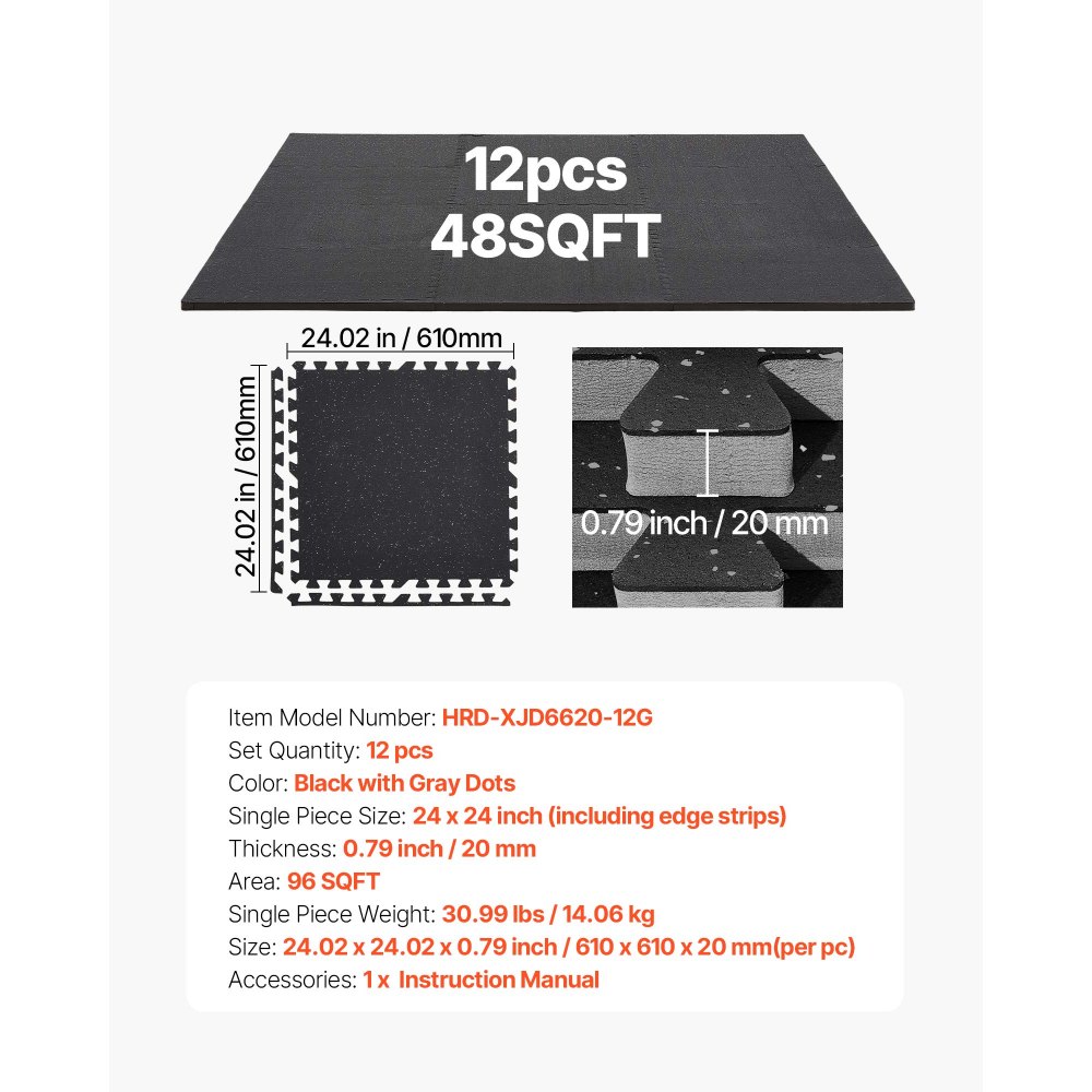 12 x Puzzle Mat Mat ochronna na podłogę 61 x 61 x 2 cm, mata z pianki EVA o wysokiej gęstości, mata fitness z możliwością łączenia, mata gimnastyczna, mata sportowa, mata treningowa (czarna) z szarymi kropkami - Budownictwo i konstrukcje | Galaxy Sklep